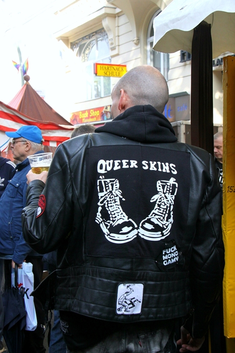 Некоторые участники праздника стремятся поразить пришедших своими нарядами и макияжем, кто-то косит под собачку, кому-то перед стендом садо-мазо демонстрируют все прелести бандажа. Одни предпочитают кожу, другие стразы и перья. Пожалуй, только тут есть шанс встретить скинхеда, который мало того, что против фашистов, так еще и против моногамии…