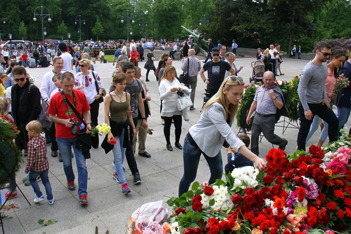 Кстати, по поводу всеобщего веселья в этот день. Я думаю, это очень правильно, что в Европе празднуют не День Победы, а День памяти и примирения. Украина, уважая традиции, с этого года отмечает оба праздника. Пока так, по-другому в нынешней ситуации нельзя. Не знаю, лично меня излишнее веселье в день окончания самой кровопролитной войны, стало немного напрягать. Впервые я это почувствовал, когда много лет назад (вероятно это было именно на 60-летие Победы) оказался 9 Мая поздним вечером тут же, на Мемориале в Тиргартене. Тогда недалеко от обелиска был установлен большой экран, и люди смотрели кинохронику о взятии Берлина. Единственное, что хорошо сохранилось в моей памяти с того дня, так это разная реакция людей на увиденное. Помню сидящую хохочущую русскоязычную компанию молодежи, пьющую пиво и лузгающую семечки, и стоящую недалеко от них пару плачущих пожилых немцев – мужчину и женщину. Они плакали не оттого, что горевали по уходящему в историю Гитлеру, а потому, что видели, как разрушают их родной город, видели трупы и страдания. Им было не до смеха. А нашим от этих кадров было очень весело, и им было, по всей видимости, глубоко наплевать даже на падающих в кадре советских бойцов. Хотя, возможно, несколько раньше эти молодые люди вручали цветы ветеранам, изображая всемирную скорбь и безмерную благодарность. Тогда я сильно задумался о том, что что-то не так с празднованием Дня Победы. С тех пор в этот день ничего не изменилось, и этот год не исключение. Такая же безудержная радость, красные флаги и цветы ветеранам, о которых вспоминают только в этот день. На следующий день о них уже никто не помнит. И о Великой Победе уже никто не будет говорить. Будут говорить только об очередном параде на Красной площади и о силе «русского оружия». И будут очень гордиться этим – мы круче всех! Это же так патриотично! Вместо скорби по погибшим – распирающее самомнение от того, что Россия опять готова всех победить, была бы новая война.