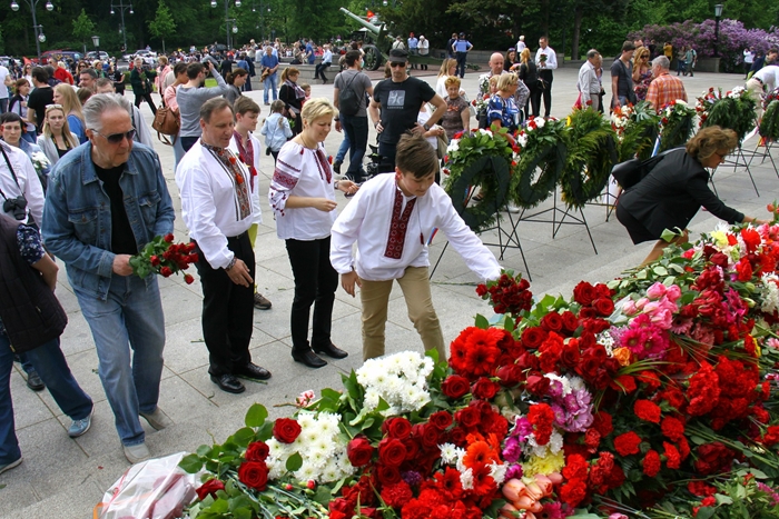 Украинцев с жовто-блакитной символикой в этот день в Тиргартене я видел не так много, зато запомнилась целая семья в вышиванках, специально прехавшая из Галле.