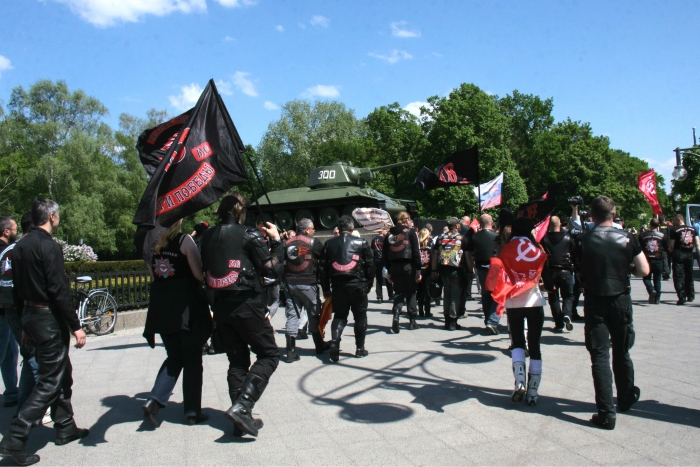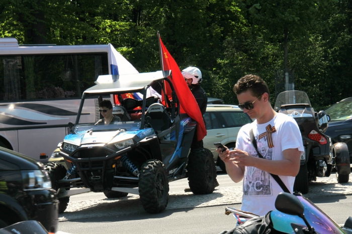 В День Победы Берлин опять окунулся в гул моторов «Ночных волков». Повторилась история прошлого года, когда, вроде как, «не пущали», но в итоге пусть и не все, пусть и не те, но приехали. Собственно, вся эта шумиха и тогда и сейчас сделала «Ночным волкам» хорошую рекламу и подняла градус ожидания выше некуда. Даже те, кто очень далек от темы байков и не был замечен в особом патриотизме, решили помахать флажками, приветствуя бесстрашных героев, прорвавшихся через границы и посрамивших злобных и пугливых европейских чиновников. Подвиги героев Великой Отечественной войны заметно поникли по сравнению с операцией «Дороги войны».