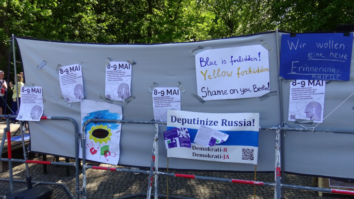 neue Erinnerungskultur), плакат с подсолнухом и жёлтый лист бумаги с надписью