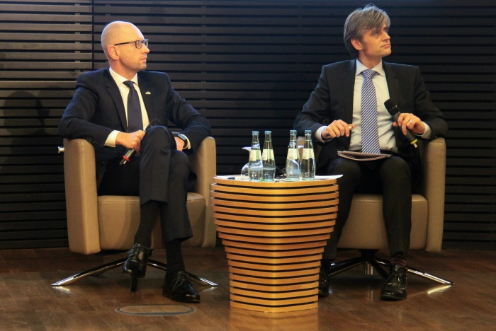 Открытой для всех желающих стала встреча с лидером «Народного фронта» в Фонде Конрада Адэнауэра. В ней приняли участие немецкие политики и общественные деятели, местные украинцы, посол Украины в Германии Андрей Мельник, журналисты. После небольшой вступительной речи высокий украинский гость ответил на вопросы присутствующих.