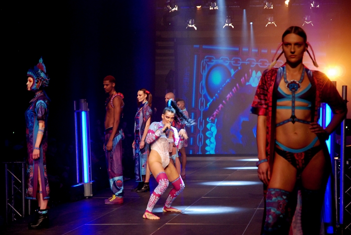И еще о технических вопросах. На подиуме и около него стояло очень много осветительных приборов, которые также не добавляли удобства просмотра. О постановке свете разговор вообще особый. Я уж не знаю, чья тут вина – дизайнеров или отвечающих за свет организаторов, но казалось, что ты не на показе моды, а в зале светомузыки или на каком-то концерте. Иногда свет был выставлен так, что рассмотреть что-либо было просто невозможно. Или устраивалась такая чехарда с миганием, что напрочь выбивала резкость камеры. Если и это было сделано для того, чтобы получить по итогам шоу красивый видеоклип, то тут хотелось бы напомнить, что задача любого показа – дать возможность зрителям рассмотреть одежду на моделях, а не поразить их разноцветными огнями, бьющими во все стороны. И тут мне также невозможно представить, чтобы во время официальной Недели моды по бокам подиума стояли огромные осветители, которые периодически ослепляли бы тех, кто пришел посмотреть именно на одежду, а не световую вакханалию. Я неоднократно был на MBFWB, знаю, о чём говорю. Более того, в одной достаточно длинной паузе между показами, два ярких осветителя были направлены прямо в глаза попавшим в их зону журналистам, лично мне даже пришлось загораживаться от сильного света камерой. Вот о чем в этот момент думал человек, отвечающий за свет?