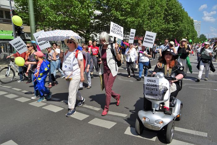 19 мая в Берлине, Мюнхене, Гамбурге, Кёльне, Франкфурте-на-Майне, Лейпциге, Штутгарте, а также в 43 городах 12 стран Европы прошли масштабные демонстрации против национализма и правого популизма. Организаторами выступили альянс организаций «Европа для всех», в том числе, благотворительный союз Parität, антиглобалистский Attac, правозащитная организация Proasyl, защитники природы Greenpeace и Naturfreunde Deutschlands, а также ряд политических партий.