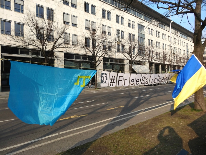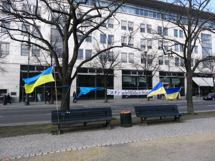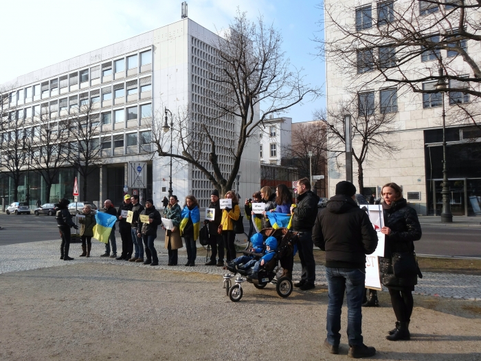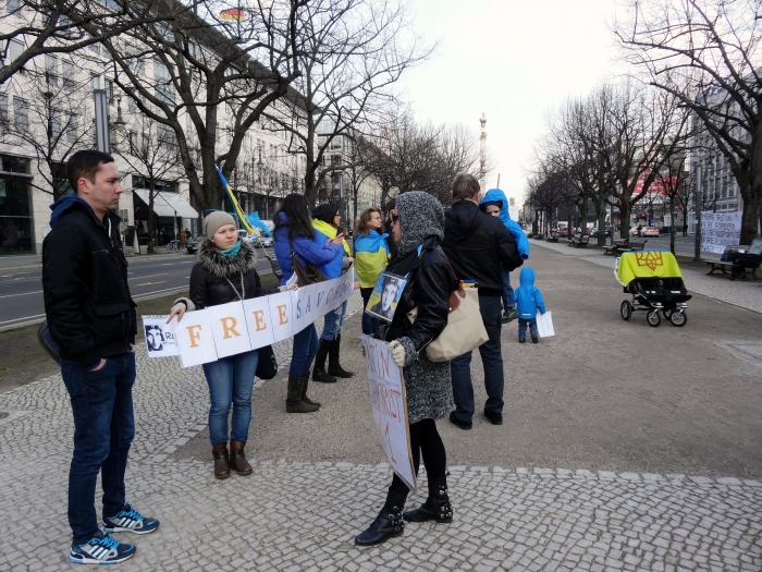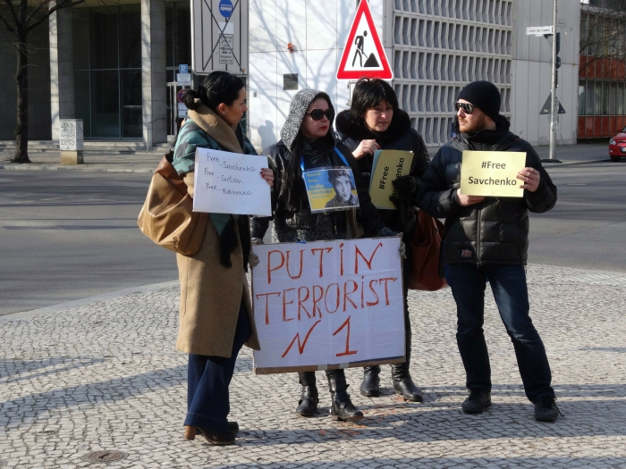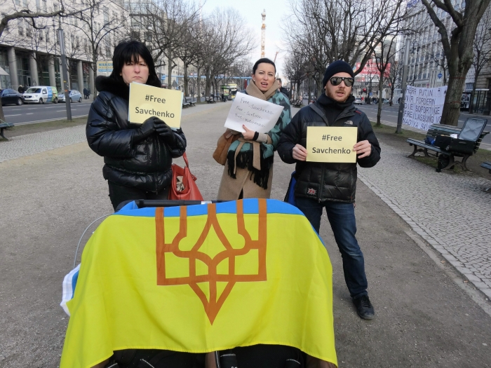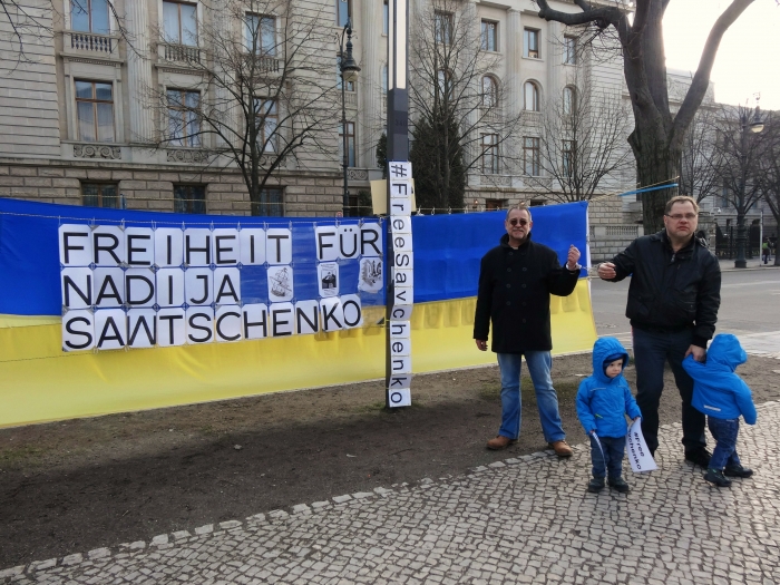 Как известно, 9 марта было объявлено днем поддержки уже почти два года находящейся в российский застенках украинской летчицы Надежды Савченко, которая объявила сухую голодовку. В день решающего судебного заседания люди не только в Украине, но и во многих странах мира, вышли на улицы, чтобы сказать решительное «нет» тому фарсу, который разыгрывается в Донецком городском суде Ростовской области. В Берлине также у посольства России в Германии состоялся пикет, в котором приняли участие представители украинской громады и местные немцы.
