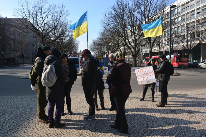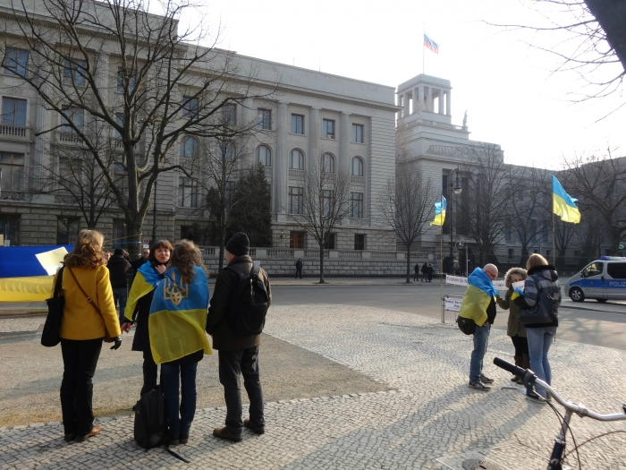 Что касается украинцев, то состав протестующих постоянно менялся – одни люди уходили, другие приходили. Тем не менее, организатор акции немецкий активист и бывший политический заключенный коммунистического режима ГДР Рональд Вендлинг (Ronald Wendling) заявил, что украинцы Берлина недостаточно активно поддерживают свою соотечественницу. Кстати, 10 марта Рональд проводит уже 70 свой пикет у российского посольства. Вот уже больше года каждый четверг он со своими немецкими друзьями приходит сюда требовать немедленного освобождения Надежды Савченко. Это уже не в первый раз Рональд обращает внимание на то, что украинцы не сильно его поддерживают. Его заявление вы найдете на нашем видео. Очень хочется, чтобы его всё же услышали.