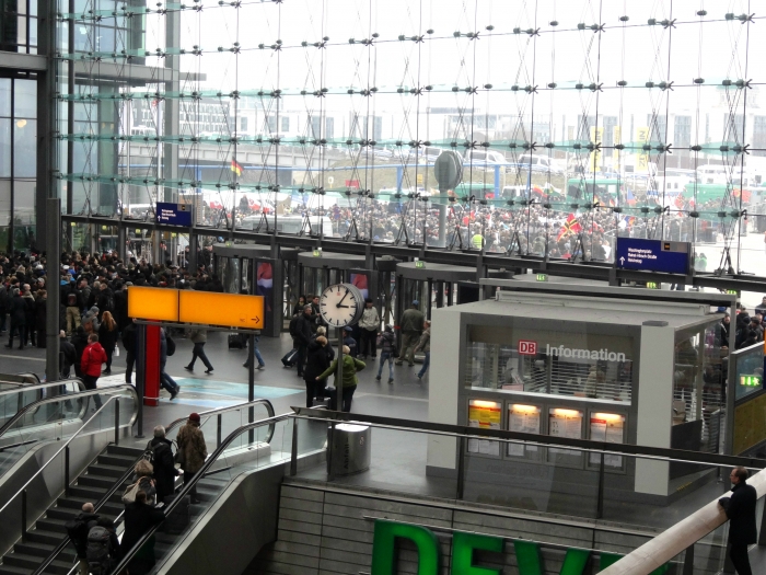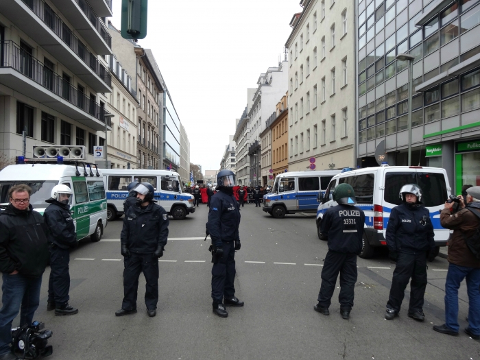 По всему маршруту колонну встречали контрдемонстранты, кричавшие «Нацисты вон!» и показывающие «факи». Также постоянно было слышно традиционное скандирование Kein Mensch ist illegal, демонстрировавшее, что эти люди полностью разделяют позицию Ангелы Меркель в вопросе приема беженцев. Полиция в количестве 1300 сотрудников действовала грамотно, перекрыв все возможные подступы, и столкновений не допустила. Тут в очередной раз замечу, что «ультра» были с обеих сторон, а отличить их друг от друга непосвященным непросто – все в черной одежде, накинутых на голову капюшонах и темных очках.