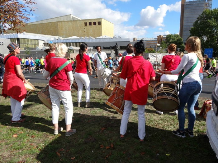 Я просто хочу окунуть вас в атмосферу этого спортивного праздника. Да-да, это праздник в полном смысле этого слова. По всему маршруту толпы зрителей, некоторые из которых даже приносят стулья, чтобы было удобнее наблюдать за тем, как заканчиваются силы у других. А если серьезно, то о злорадстве тут и речи быть не может, – все хлопают, кричат, свистят и всячески поддерживают тех, кто в отличие от них все же решился преодолеть марафонскую дистанцию. Даже плакаты рисуют и вывешивают с именами тех, за кого болеют. А многочисленные музыкальные группы поддерживают необходимый ритм, убивая свои барабаны не меньше, чем спортсмены – кроссовки.