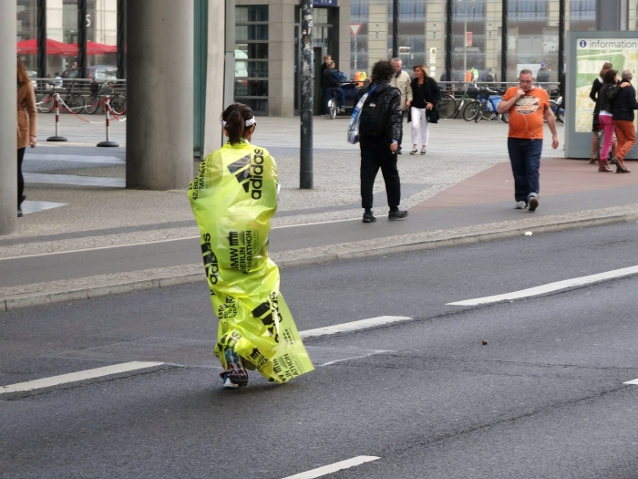 А на втором видео – достаточно большая картинка того, как проходил нынешний Берлинский марафон. Повторяю, я снимал далеко не лидирующую группу участников. Это самые обычные любители бега, которые вышли на старт не ради победы над всеми, а ради победы над собой. Я прошел с ними от станции метро «Бюловштрассе» до Потсдамер Плац, а дальше до Бранденбургских ворот, где и был финиш дистанции. Одни еще бежали, а другие уже гордо надевали на шеи медали. А потом я тем же маршрутом вернулся почти до станции метро «Ноллендорфплац». Сотрудники марафона уже снимали ограждающие ленты, автомобили увозили ограждения, а некоторые участники марафона все шли и шли, и им все также хлопали все, кого они встречали на своем пути.