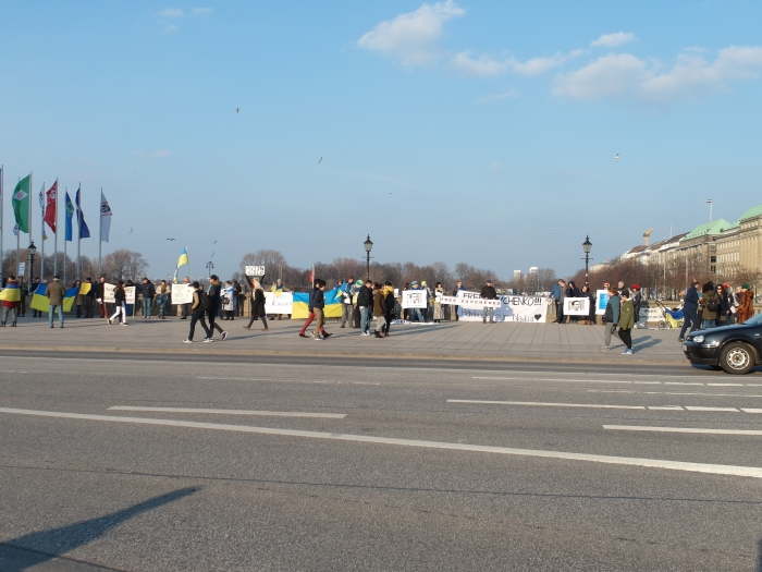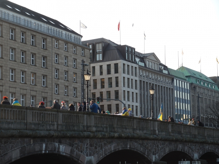 Несмотря на рабочий день, акция в поддержку Надежды Савченко в Гамбурге получилась достаточно масштабной. Митинг проходил неподалеку от ратуши, на мосту Jungfernstieg. Через два с половиной часа после начала демонстранты устроили шествие по центральным улицам города к главному вокзалу, где простояли еще полчаса.