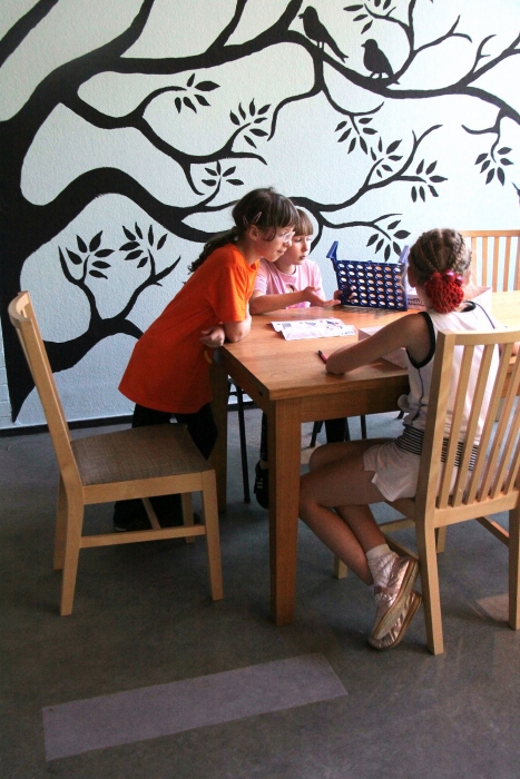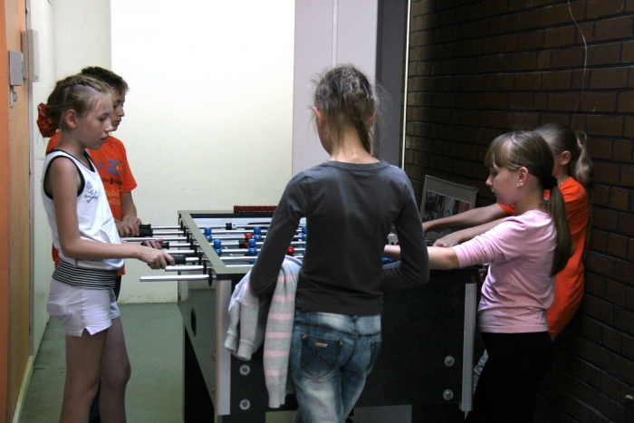 После цирковых уроков каждый занимается тем, чем хочет – гоняет мяч в спортзале, играет в теннис, настольный футбол или бильярд, не забывают и всевозможные игры, и куда же без компьютеров.