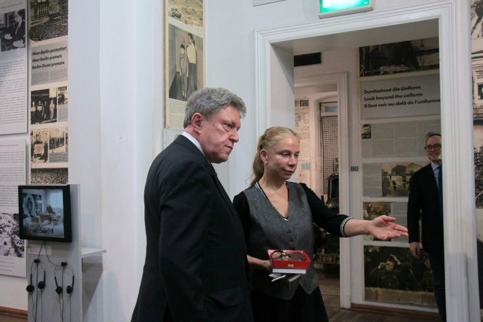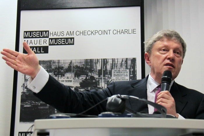 8 декабря в берлинском Музее Стены состоялось выступление лидера партии «Яблоко» Григория Явлинского, организованное при содействии российского филиала Фонда Фридриха Науманна (Friedrich Naumann Stiftung – Für die Freiheit). Перед встречей с многочисленной аудиторией директор музея Александра Хильдебрандт познакомила одного из лидеров российской оппозиции с уникальной экспозицией, рассказывающей о временах «холодной войны».