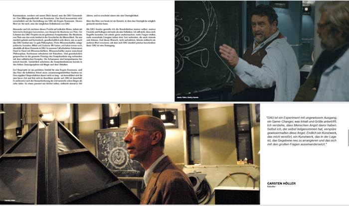– В этом смысле мне довольно спокойно, потому что я был на показах, и билеты были распроданы меньше, чем за минуту в зале на 1600 человек в Berlinale Palast, на 1000 человек в Friedrichstadt-Palast. Люди смотрели фильм до конца, практически никто не уходил. Мне кажется интересным и удивительным то, что английская и американская пресса, которая всегда обычно жёстче, как бы консервативнее относится к такого рода проектам, - и The New York Times, и The Guardian, и The Independent, - написали большие, положительные статьи о проекте, «пять звёзд», что бывает не часто. А в Германии большая часть средств массовой информации, действительно, как-то на этот проект резко смотрела. Мне кажется, это связано ещё и с моментом Берлинской стены. История проекта «Дау» и конфликта со средствами массовой информации происходит уже с довольно давних времён. Но часто это ещё и манипуляции, это перепечатывание и компиляция слухов бездоказательных, повторы какой-то лживой информации. Поэтому я к этому отношусь спокойно, тем более что многие люди, кто пишут об этом фильме, фильм не смотрели, обсуждают его только морально-этические качества, исходя из слухов.
