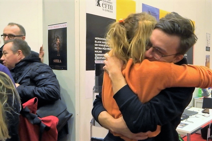Накануне показа, 19 февраля, творческая группа фильма «Когда падают деревья» посетила национальный стенд Украины на Европейском кинорынке (European Film Market). Интервью у режиссёра и актёров я, правда, брал не там, а уже во время прогулки ребят по городу. Коротко передам содержание того, о чём мы говорили, но рекомендую посмотреть все видео целиком.