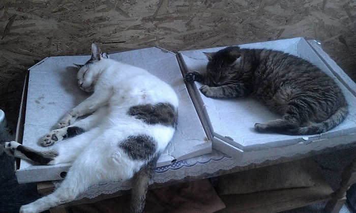 Сейчас мы строимся, так как старый домик для котов за две зимы отсырела, крыша потекла, проводка плохая. Строим быстрый каркасный домик, две комнатки по 9 метров с отдельными ходами и летний вольер. Эконом-вариант, но в долги и кредиты влезли по самое-самое… Почти все собаки живут в будках, только маленькие – такса Ляля и двулапая Ромашка – живут с нами, а бородатая рыжая Лиса и «блондинка» Катя – на старой кухне.