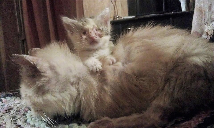 Началось всё с того, что мы услышали о таком методе лечения как фелинотерапия (метод лечения человека с помощью его взаимодействия с кошками. – Ред.). Наш сын Никита – инвалид детства, ДЦП. До этого мы и дельфинотерапией лечились, и иппотерапией (метод реабилитации больных людей посредством лечебной верховой езды. – Ред.) тоже, а вот фелинотерипией ещё – нет. Хотя три кота своих у нас уже было. И только мы с супругом решили познакомиться с этой наукой поближе, как я и старшая наша дочь находим у себя в парадном кошку и семь новорождённых котят. Вот после этого и началось наше близкое знакомство с предметом изучения. Поселили мы Пердитту (по-испански значит «потерянная») у Никиты в комнате, что бы её наши коты не видели. И Никита начал нянчится с котятками и их мамой. Развивал мелкую моторику рук, тактильные ощущения, научился заботиться о ком-то, кто слабее, кормил, воду наливал (а ему это нелегко очень было, сам плохо сидел тогда), туалет подопечных пытался чистить…