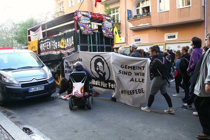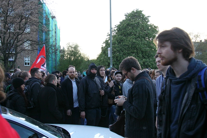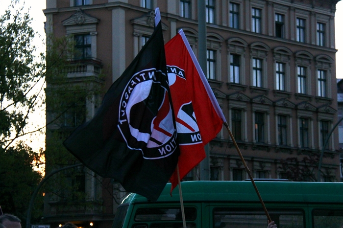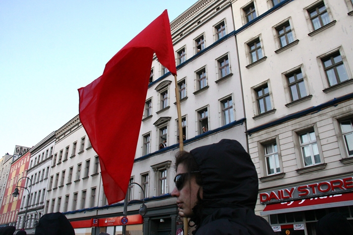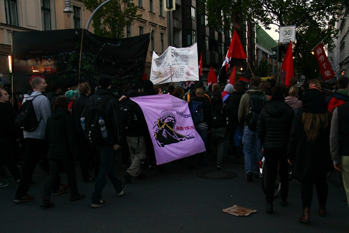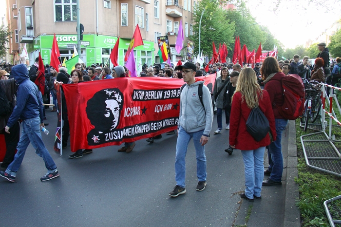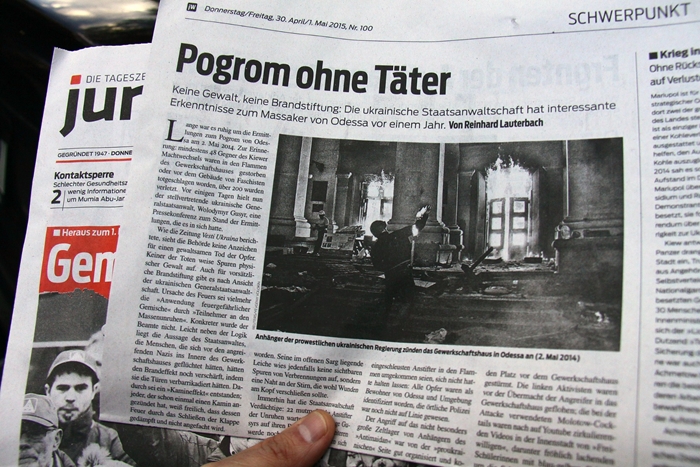 Кстати, странно, но в этом году обошлось без российских флагов и гимна СССР. Разве что, только распространялась молодежно-левацкая газета Jinge Welt со статьей о трагедии в Одессе. Да и то, что-то не многие выражали желание взять ее даже бесплатно.