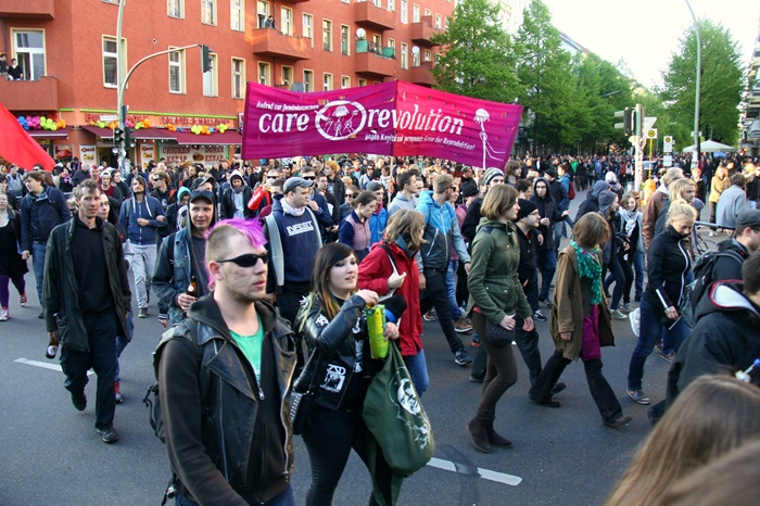 1 Мая в Берлине проходит очень много самых разнообразных мероприятий, выбор у народа есть, поэтому кто-то борется за свои права, выходя на демонстрацию, а кто-то просто отдыхает, выезжает на природу с семьями и друзьями, жарит мясо, пьет пиво и веселится, как может. В этом году мы опять решили показать вам то, что происходит в самом революционном районе Берлина – Кройцберге.