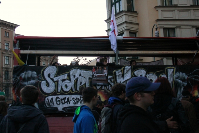 Если представители «черного блока» традиционно идут в начале колонны, то в ее конце находятся более умеренные демонстранты. Тут звучит заводная версия революционной «Варшавянки» – Haidy Barikata в исполнении турецкой группы Bandista. Тут развиваются флаги разных стран, тут, конечно же, есть борцы за свободу Палестины. Куда же сторонникам левых течений без угнетенных пролетариев из Сектора Газа? Тут все понятно, цепочка известная: капитализм-глобализм-США-Израиль. Боремся, клеймим, протестуем…