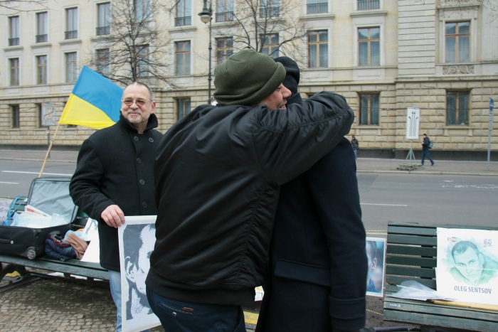 Отдельно отмечу, что в Берлине Надежда Савченко нашла время, чтобы встретится с немецким активистом Рональдом Вендлингом (Ronald Wendling), который вот уже третий год пикетирует Посольство РФ в Германии, требуя немедленного освобождения украинских политзаключённых из российских тюрем. Беспрецедентная по длительности акция Рональда Вендлинга началась именно с борьбы за свободу Надежды Савченко.