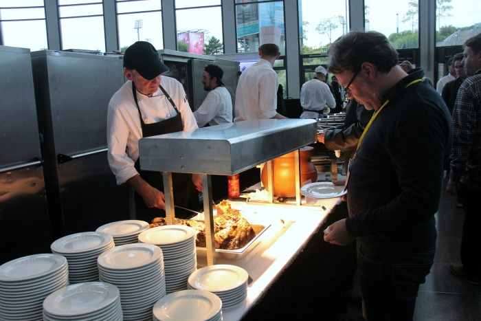 ShowStoppers – это мероприятие с особым, проверенным временем, духом. Аккредитованные здесь сотрудники масс-медиа могут не только узнать о новинках техники прямо от их создателей, но сделать это не на пустой желудок. Известно, что голодный журналист намного менее работоспособный, чем сытый. Именно поэтому и на нынешнем ShowStoppers столов с разнообразными блюдами, десертами и напитками, а также поваров и официантов было не меньше, чем разработчиков всевозможных модных гаджетов, стендисток и руководителей фирм.