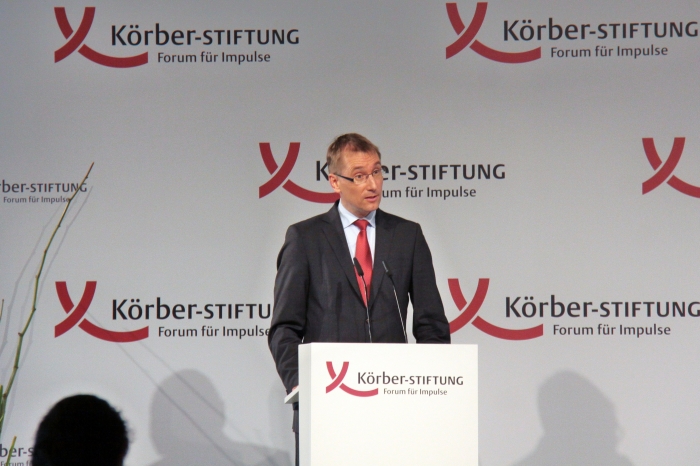 27 июня в престижном столичном отеле Adlon состоялась встреча Владимира Гройсмана с немецкими политиками, предпринимателями, общественными деятелями и журналистами, организованная фондом Körber-Stiftung. С приветственным словом выступил член правления Фонда Томас Паульсен (Dr. Thomas Paulsen). Интересно, что господин Паульсен пригласил украинского премьера к трибуне на украинском языке: «Пане прем'єр-міністре, зараз я надаю вам слово».