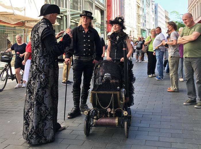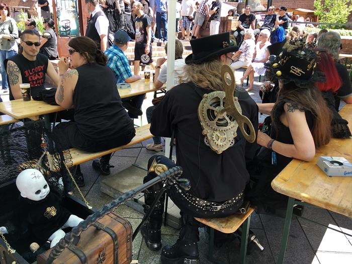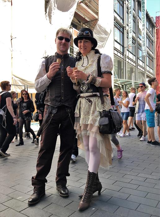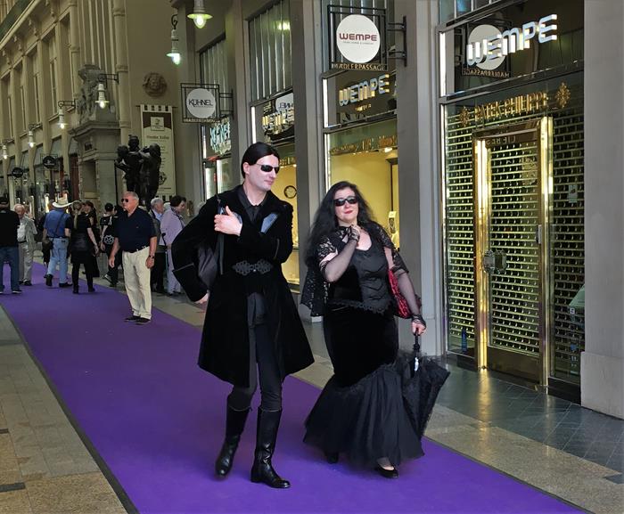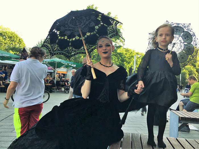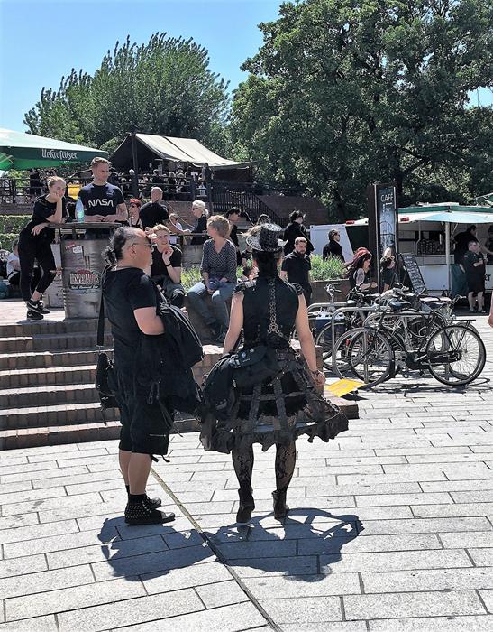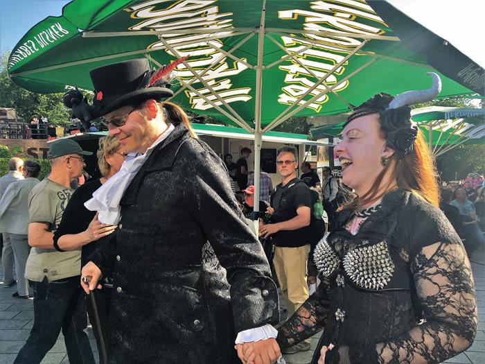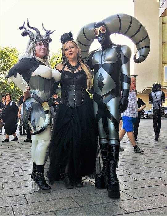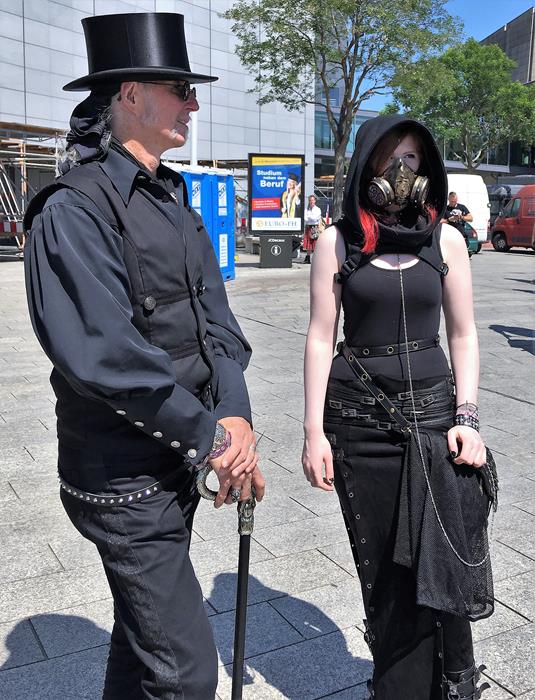 Я не зря посетовал на то, что далеко не всех ярких участников Wave-Gotik-Treffen успел сфотографировать. Многие из них приезжают в Лейпциг даже не для того, чтобы музыку послушать, а чтобы себя показать и на других посмотреть. Они с удовольствием позируют перед камерами и делают селфи со всеми желающими.