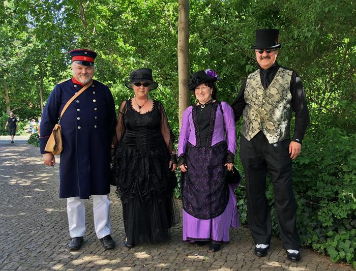 К сожалению, я приехал в Лейпциг в воскресенье, когда фестиваль уже был в самом разгаре, а некоторые гости уже и уезжали. Многие необычно одетые персонажи в мой объектив так и не попали, хотя кого-то я успел увидеть через окно трамвая. Одно из самых интересных мероприятий прошло в первый день, в пятницу. Тогда в парке в центре города собрались почти 8000 человек на викторианский пикник на траве. Понятно, что этот бранч стал настоящим подарком для фотокорреспондентов.