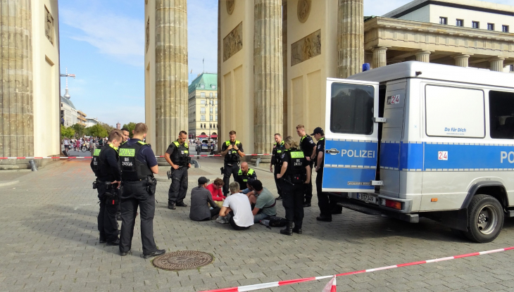 Берлин в 42 местах. Дежурят в местах проведения акций более 500 полицейских. Под вечер было 266 арестов.
