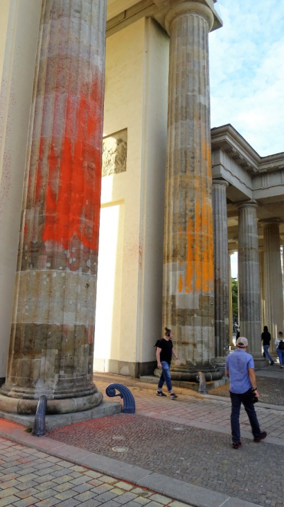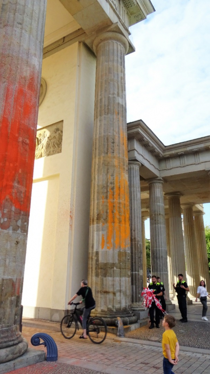 отмыть краску не получилось, поэтому оцепление у Бранденбургских ворот сняли.