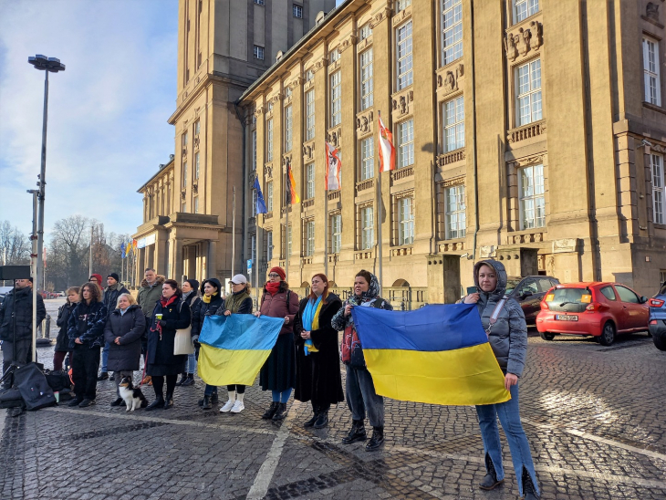 Пізно ввечері цього дня на площі Бебельплац, де колись нацисти спалювали неугодні їм книжки, відбулася неполітична траурна акція «День скорботи». Одним з її організаторів виступив нещодавно звільнений у рамках обміну із Заходом російський опозиціонер Андрій Пивоваров. Тут прозвучали великі твори класичної музики, показували документальні кадри війни в Україні, горіли меморіальні свічки, була і Хвилина мовчання.
