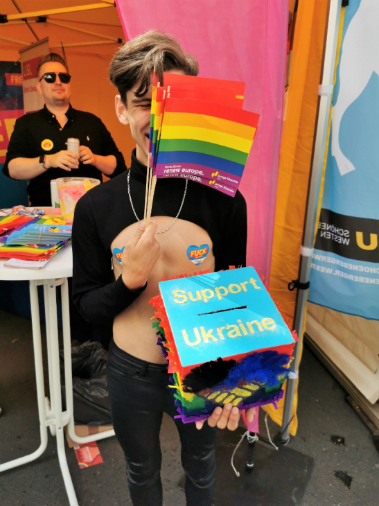 Яркий ящик с надписью Support Ukraine явно не пустовал. Берлинский профессиональный гей-проект против