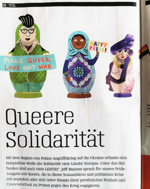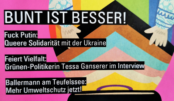 также часто звучала тема помощи Украине. Квир-солидарности с Украиной посвятил свою статью и гей-журнал Siegessäule.