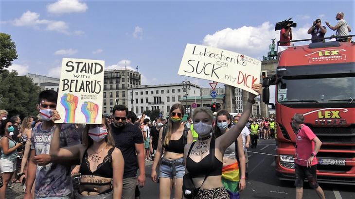диаспоры. Их плакаты, посвящённые диктатору Лукашкенко, очень бы ему не