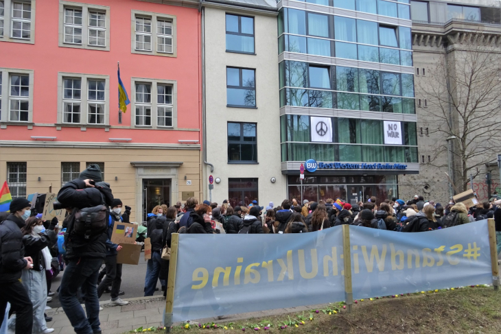 к посольству Украины в Германии, где сделала длительную остановку.