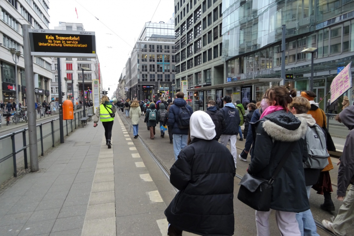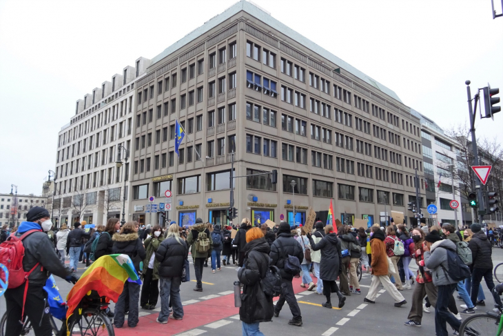 квартал. Прокричав лозунги у Ведомства федерального канцлера, колонна направилась