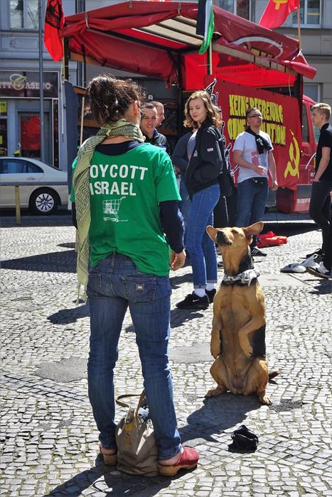 На митинге выступили немецкий, турецкий и палестинский «товарищи», все поаплодировали зажигательному палестинскому танцу и читке рэперов. На митинге говорилось обо всем, что угодно – от перечисления коммунистических партий до борьбы курдов, но главной, безусловно, была критика Израиля. Несколько раз проскандировали: «Свободу Палестине!». Никакого осуждения палестинских террористов не прозвучало.