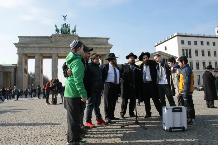 Естественно, если были раввины, то не могло не быть веселых песен и танцев, что очень порадовало как журналистов, так и туристов, пришедших на Парижскую площадь, посмотреть главный символ Германии.