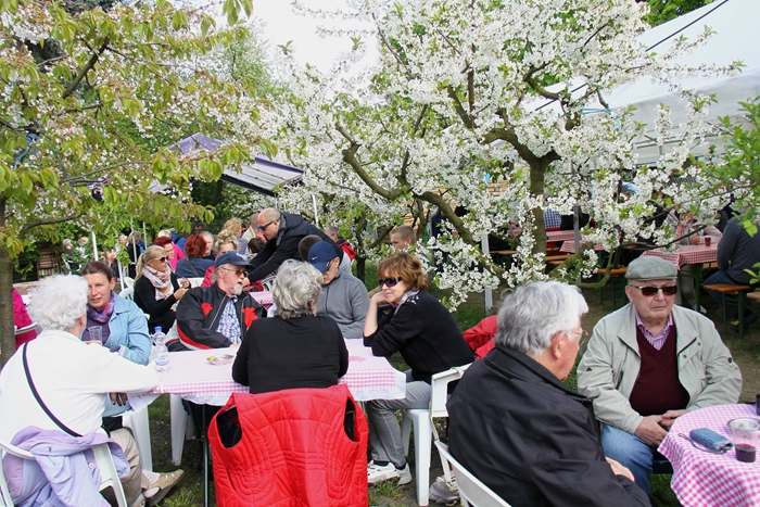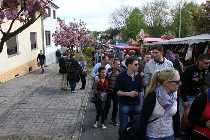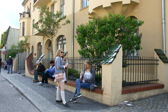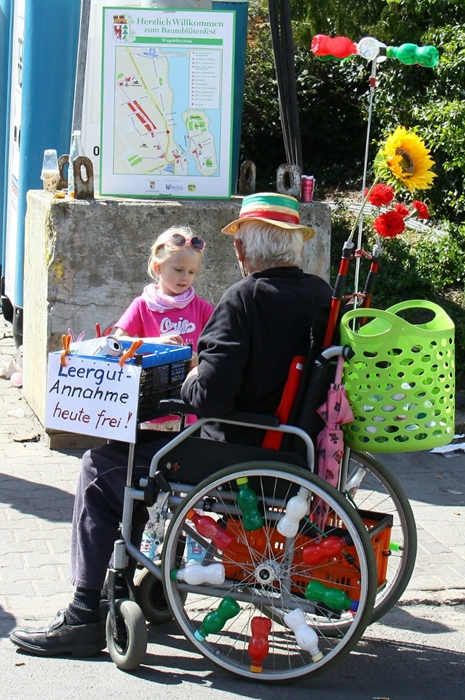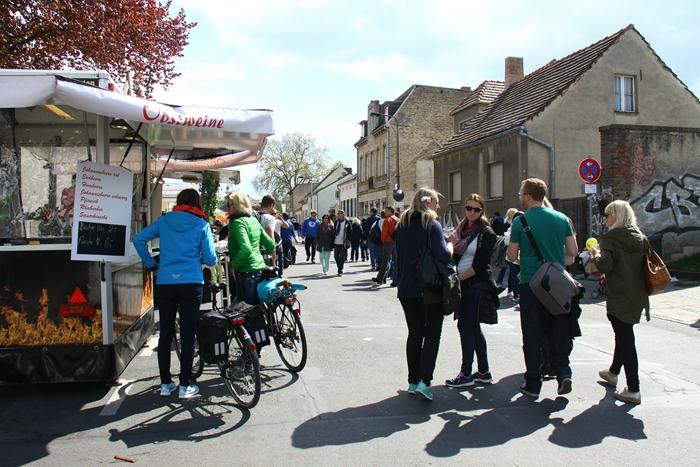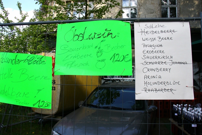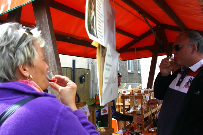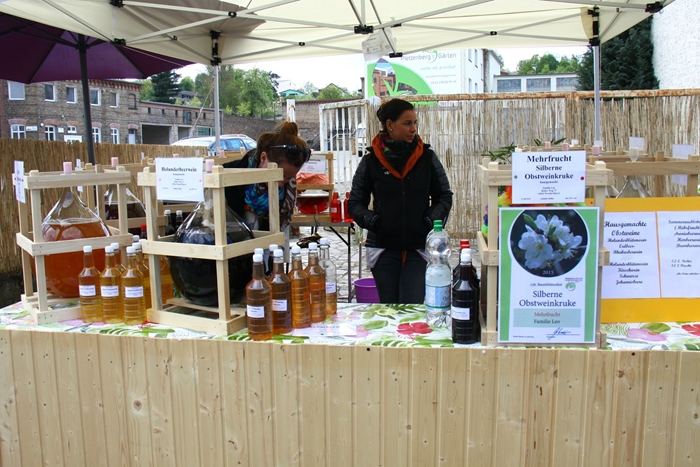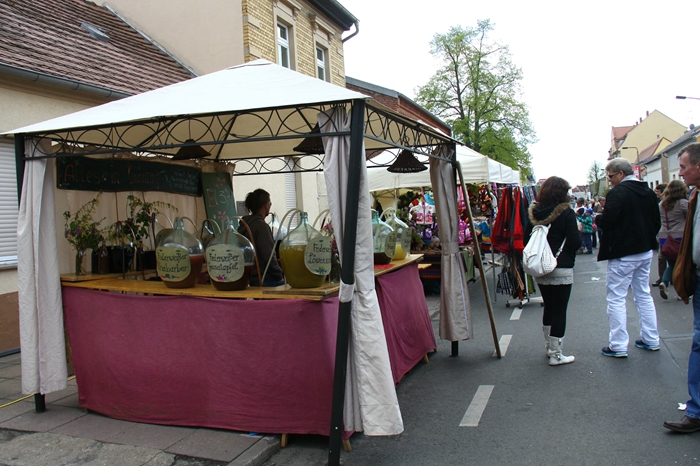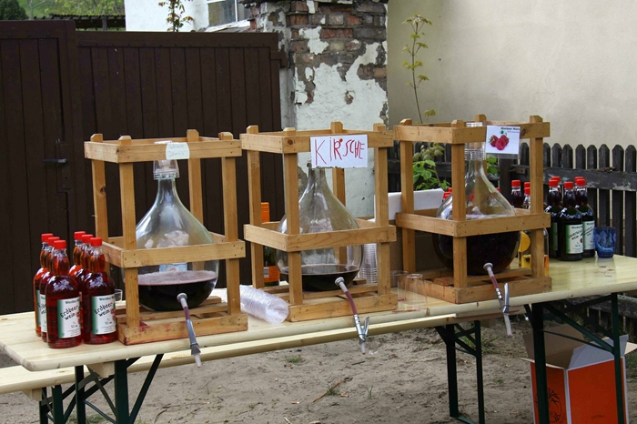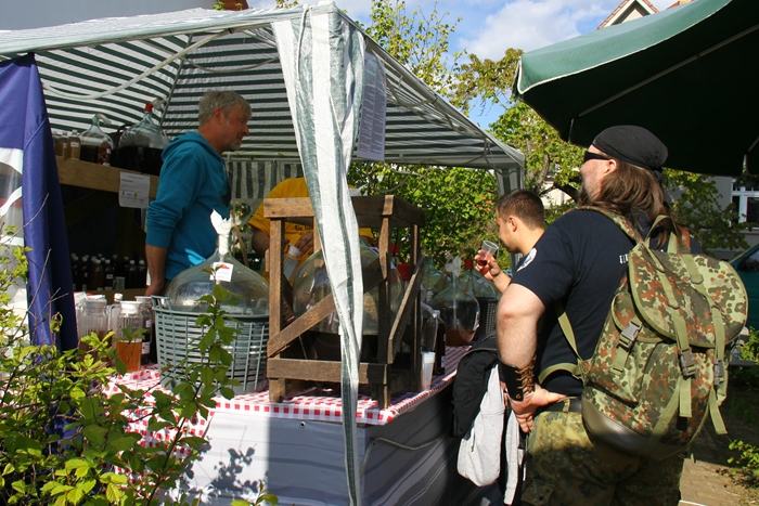 Вообще, в это время в Вердере (Хафеле) очень красиво и весело, цветение деревьев перемешивается с запахом разнообразных вин. Вина есть на все вкусы – разного цвета и разной крепости, в огромных бутылях и пластиковых бутылках, из яблок, винограда, клубники, малины, смородины, персика, сливы, клюквы, бузины, ревеня, тёрна, ежевики, еще из каких-то ягод и цветов. Есть вина, где перемешаны много фруктов, есть даже вино из конопли с медом из Лейпцига. Пробуй – не перепробуешь…