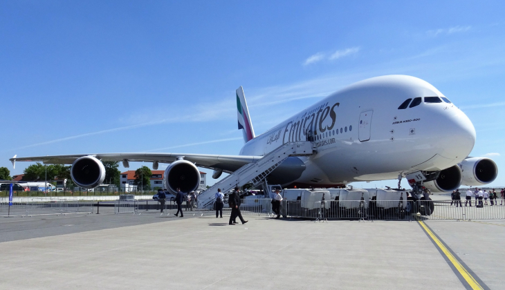 широкофюзеляжного двухпалубного Airbus A380-800 компании Emirates и самолёта