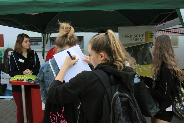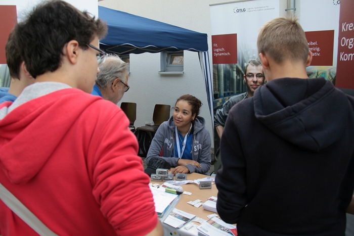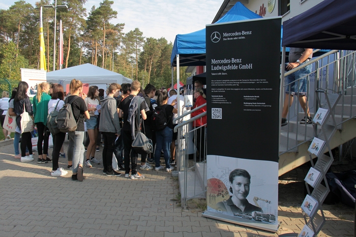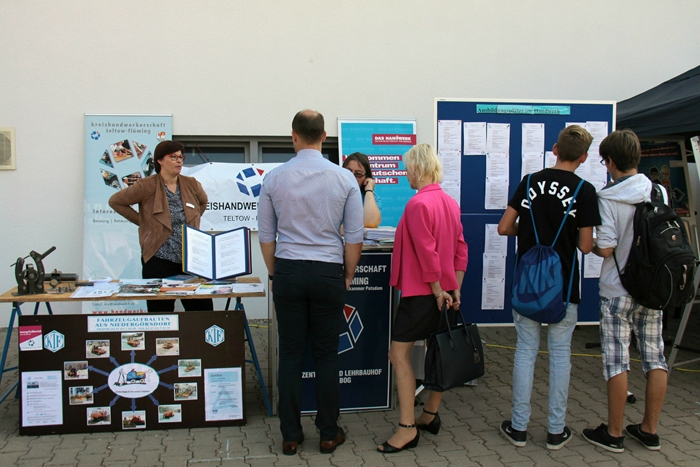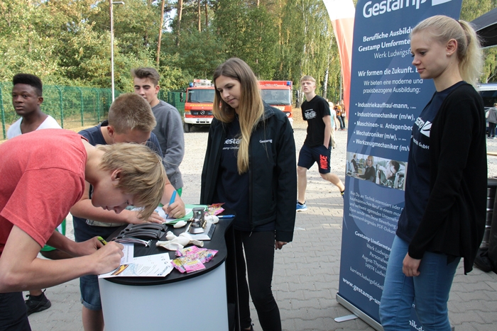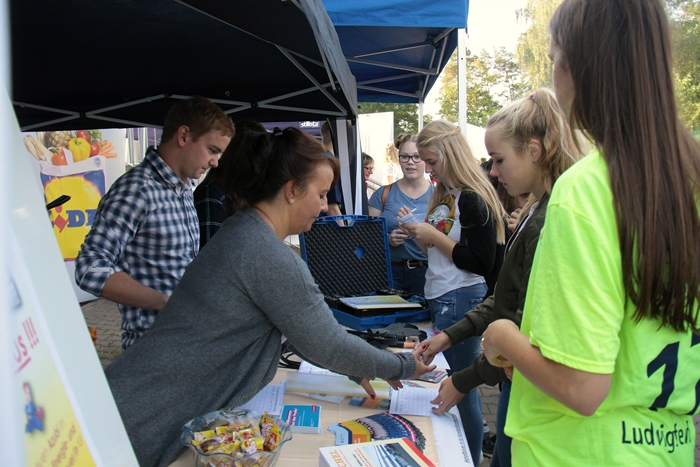 С утра на местном стадионе собрались не только школьники из Людвигсфельде, но приехали и их сверстники из также входящих в район Тельтоф-Флеминг соседних городов – Треббина (Trebbin) и Гросберена (Großbeeren). Тут уже расположились многочисленные информационные стенды учебных заведений, различных по величине и известности компаний, государственных и общественных организаций, которые заинтересованы в новых учащихся и работниках. Собравшихся приветствовали бургомистр Людвигсфельде Андреас Игель (Andreas Igel) и статс-секретарь, отвечающий за образование, молодежь и спорт в земле Бранденбург Томас Дрешер (Dr. Thomas Drescher).