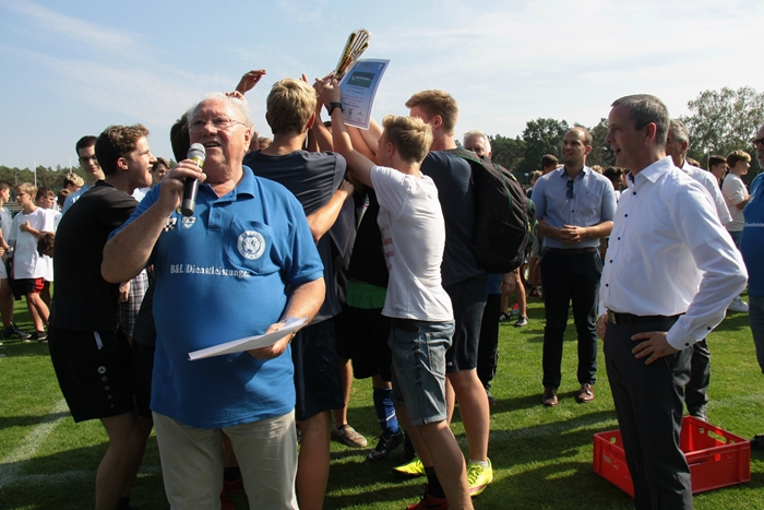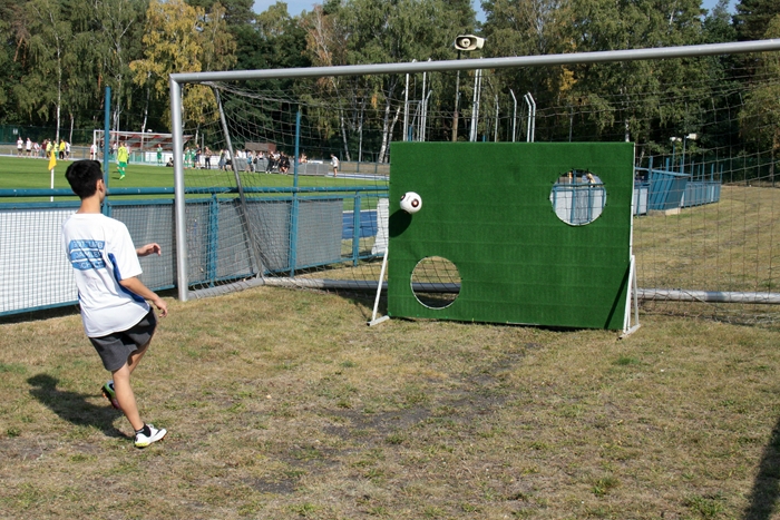 А после ребята и девочки соревновались в эстафете и футболе, а также могли проверить свои точность и силу удара по мячу на специальной площадке. Пока кто-то соревновался и болел, другие обходили информационные стенды, собирали печати на своих листочках и задавали все интересующие их вопросы, в том числе представителям полиции, Бундесвера, пожарной службы и Красного Креста.