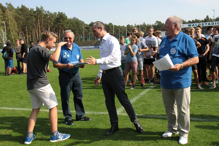 Далеко не все уходящие на пенсию люди отходят ото всех дел и спокойно наслаждаются жизнью, проводя время перед телевизором или обсуждая последние новости на лавочке перед домом. Находятся и те, кто просто придумывают себе новую работу, пусть и общественную. Есть такая активная группа пенсионеров и в маленьком бранденбургском городке Людвигсфельде (Ludwigsfelde), что совсем недалеко от Берлина. Возглавляет этих неугомонных активистов Рольф Шмидт (Rolf Schmidt), который рассказал мне, что они единственные в Германии, кто догадался в работе с подрастающим поколением объединить спорт и профориентацию. И вот 16 сентября в Людвигсфельде состоялся уже пятый подобный праздник.