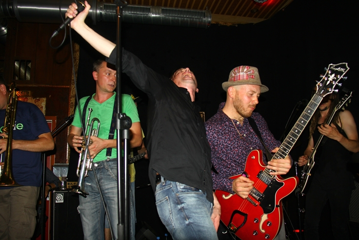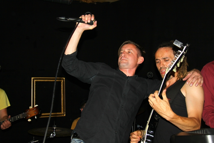 10 июня в культовом берлинском клубе Burger состоялся концерт известного украинского писателя, публициста, гражданского активиста, музыканта Сергея Жадана и харьковской группы «Собаки в Космосе». Выступление прошло в рамках европейского турне под названием «Десять праведников». До Германии ребята отыграли в Украине, Беларуси и Польши. Именно в Польше произошел неприятный инцидент – из машины группы были украдены музыкальные инструменты. Поэтому в Берлине ребята играли на том, что уцелело, на чужих клавишах и на двух гитарах предоставленных известным берлинским музыкантом, фронтменом группы RotFront, и тоже выходцем из Харькова Юрием Гуржи. Кстати, Юра сыграл несколько вещей с Жаданом и Собаками, а Сергей даже сказал, что имеет на Гуржи некие творческие планы. Ну, что ж, ждем.