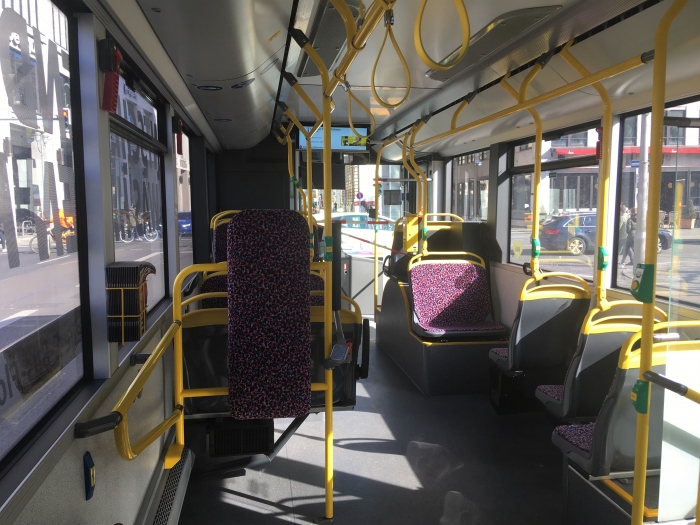 Самым ярким напоминанием о том, что в воздухе есть какой-то смертельный вирус, являются городские автобусы. Власти Берлина постарались максимально обезопасить их водителей от заражения. Именно поэтому вход через переднюю дверь для пассажиров сейчас запрещён, на ней прикреплено предупреждающее объявление, а передняя часть автобуса ограждена лентами. Поскольку билеты теперь у водителя купить нельзя, при необходимости их необходимо приобретать заранее.