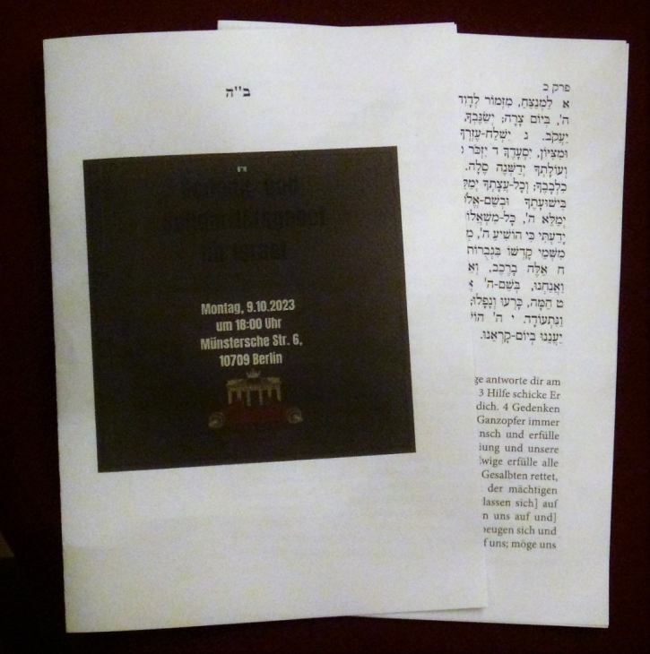 (Jüdische Gemeinde Chabad Berlin) состоялась молитва памяти и солидарности с
