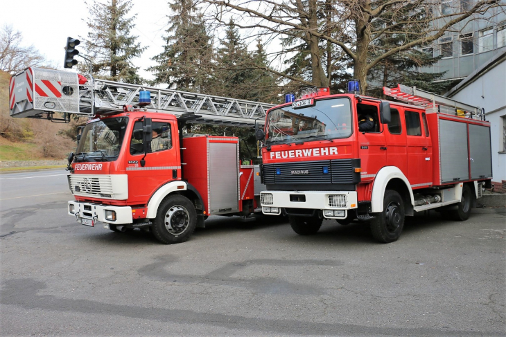 На німецькому сайті voelklingen-im-wandel з'явилася інформація про одну з машин, яка є на нашій фотографії. Це автомобіль з драбиною. Він має довгу історію, технічно унікальний, 18 років прослужив у пожежній частині міста Фельклінген і ще 9 років у місті Людвайлер (теж земля Саар). Тепер унікальний автомобіль рятує життя людей у Харкові.
