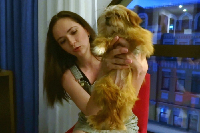 Когда я приехал в Киев, мы договорились с Катей об интервью. Она пришла в гостиницу после работы, поздним вечером, и не одна, а с собачкой Сансой на руках.