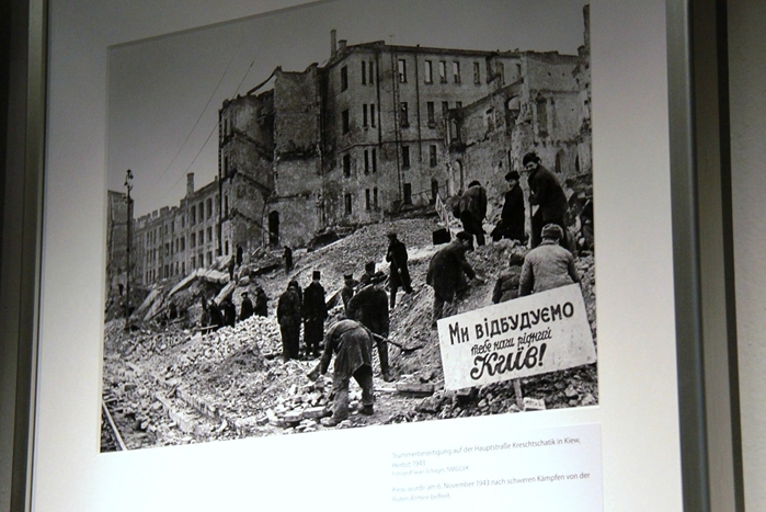 В Германо-российском музее Берлин-Карлсхорст, находящемся именно в том здании, где 8 мая 1945 года был подписан акт о безоговорочной капитуляции фашистской Германии, открылась фотовыставка «Украина в огне». Представлены уникальные снимки из коллекции Национального Музея истории Великой Отечественной войны 1941-1945 годов. Эти 64 фотографии сняты в то страшное время, как известными фотокорреспондентами, так и любителями, многие авторы до сих пор неизвестны.
