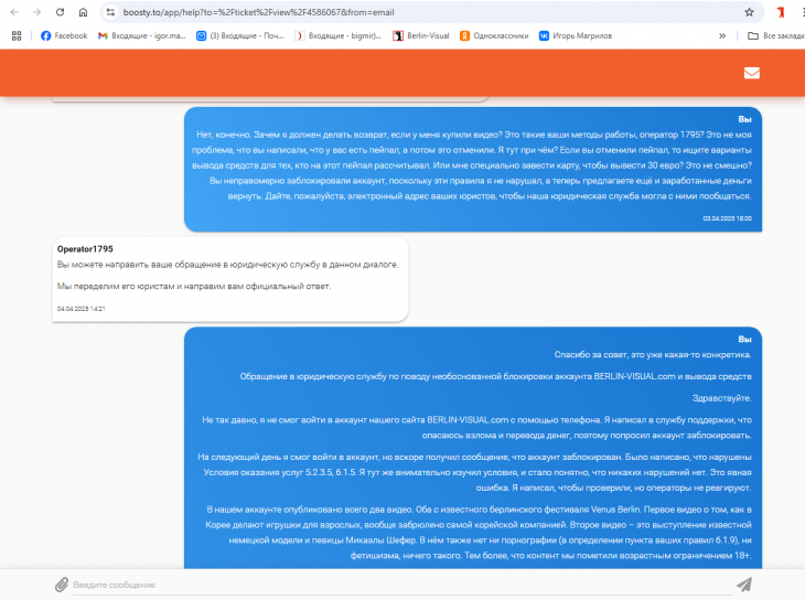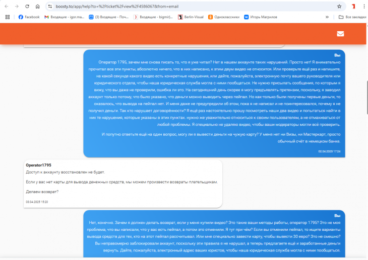 письмо, которое отправлял в адрес поддержки boosty. Тут всё понятно, всё расписано и расшифровано. Делайте выводы сами.